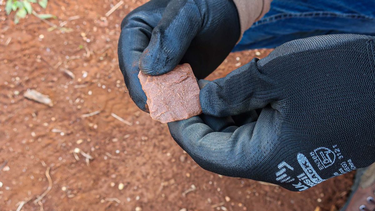 Os vestígios arqueológicos, compostos por materiais líticos lascados (pedra lascada) e fragmentos cerâmicos, foram encontrados sobre a superfície de uma suave elevação, distante 50 metros do leito do rio.